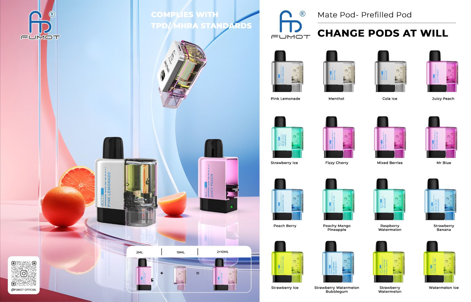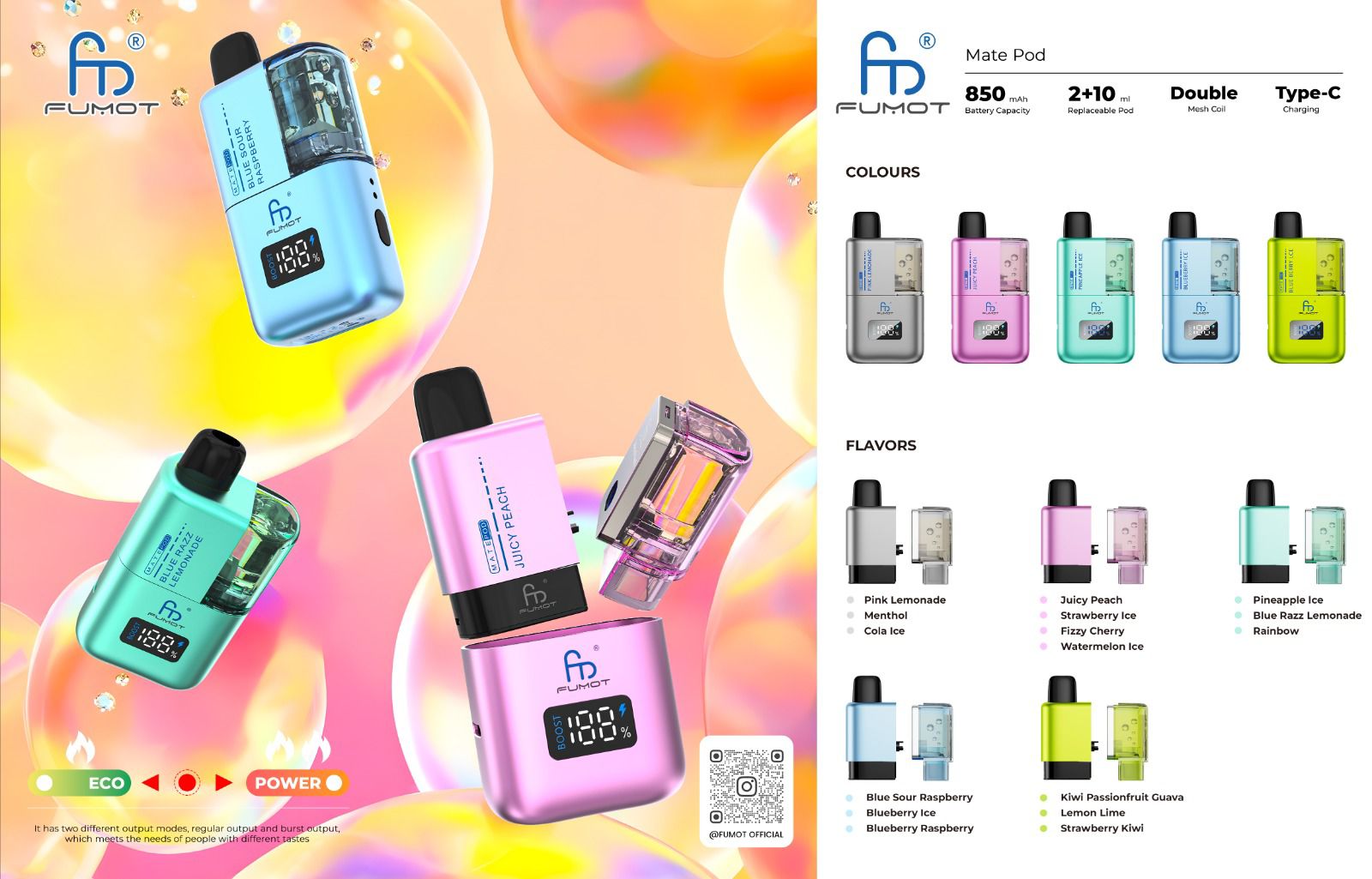 Each FUMOT MATE 10K pod comes loaded with bold flavour profiles and a powerful throat hit that’s consistent from start to finish. No spills, no refills — just pop in your Fumot Mate Pod and enjoy effortless vaping, anytime, anywhere.
